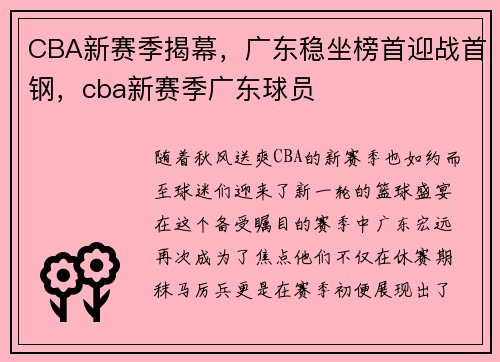 随着秋风送爽,CBA的新赛季也如约而至,球迷们迎来了新一轮的篮球盛宴。在这个备受瞩目的赛季中,广东宏远再次成为了焦点,他们不仅在休赛期秣马厉兵,更是在赛季初便展现出了强大的实力,稳居积分榜榜首。首场比赛,广东宏远便迎来了一场硬仗——对阵北京首钢,这场比赛不仅关系到两队的赛季开局,更成为了整个联赛的风向标。